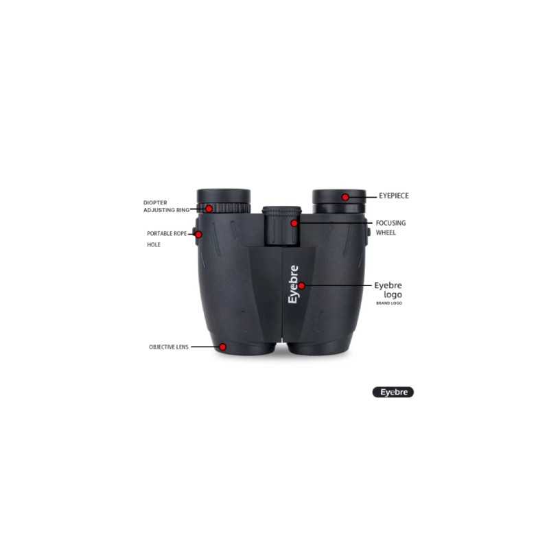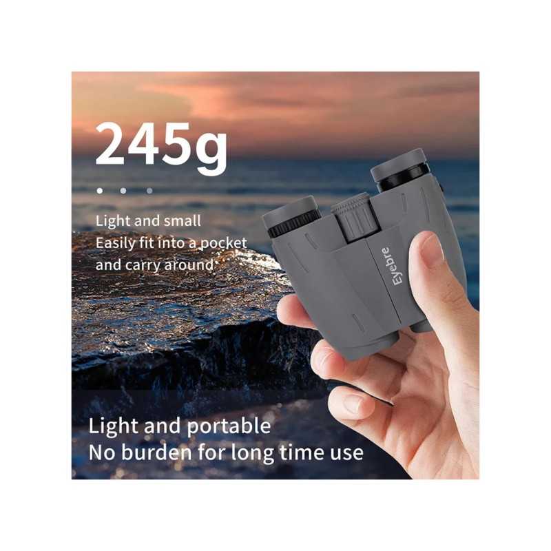 دوربین دوچشمی آی بر مدل BINOCULARS کد 10*25Eyebre با طراحی ارگونومیک و بدنه‌ای مقاوم از جنس پلاستیک ABS، گزینه‌ای مناسب برای طبیعت‌گردی، کوهنوردی و سفرهای ماجراجویانه است. این دوربین با بزرگنمایی ۱۰ برابر و قطر دهانه ۲۵ میلی‌متر، تصویری شفاف و دقیق را ارائه می‌دهد. میدان دید آن ۱۰۴ متر در ۱۰۰۰ متر (معادل ۶.۵ درجه) بوده که دید مناسبی از مناظر و اجسام دور در اختیار کاربر قرار می‌دهد.