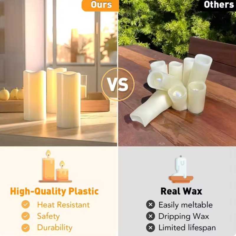 این مدل با ابعاد استاندارد ۱۵×۸×۸ سانتی‌متر و وزن ۵۹ گرم طراحی شده تا روی هر سطوحی به‌راحتی قرار بگیرد و با هر سبک دکوراسیونی—from مینیمال تا کلاسیک—هماهنگ شود. فیتیله پلاستیکی با قابلیت شعله متحرک یکی از جذاب‌ترین ویژگی‌های این شمع است؛ نور شمع به‌صورت لرزان و طبیعی تابیده می‌شود و جلوه‌ای دقیقاً شبیه شعله واقعی ایجاد می‌کند، بدون اینکه گرما تولید کند یا خطری داشته باشد. این طراحی واقعی‌نما، آن را برای استفاده در فیلم‌برداری، عکاسی و چیدمان‌های خاص بسیار مناسب کرده است.