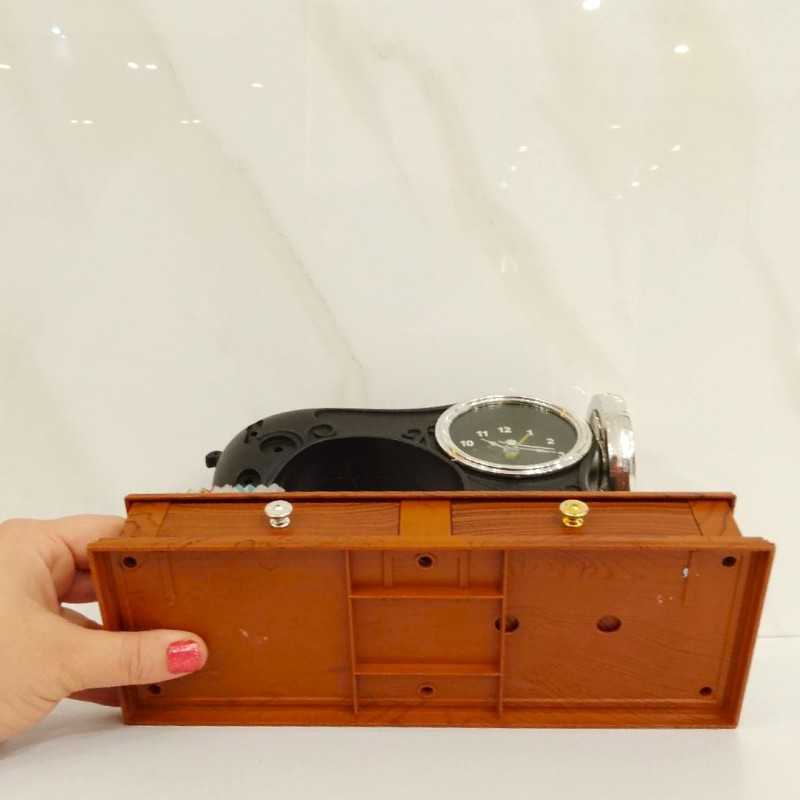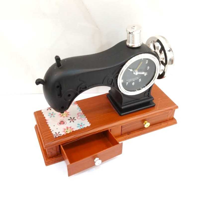 با انتخاب دکوری چرخ خیاطی، تلفیقی از هنر، تاریخ و سبک مدرن را به فضای خود بیاورید و فضای گرم و الهام بخش بسازید. این محصول با الهام از چرخ های خیاطی قدیمی و کلاسیک، جلوه ای نوستالژیک به محیط می بخشد و همزمان با خطوط مدرن و مینیمال، هماهنگی بی نظیری با دکوراسیون های امروزی ایجاد میکند. جنس این چرخ خیاطی از پلاستیک مقاوم با دو کشوی جا دار برای لوازم خیاطی و بدلیحات می باشد; ساعت روی چرخ خیاطی با یک باتری قلمی AA کار میکند. مناسب برای منزل، دفتر کار ، فضاهای خلاقانه می باشد. هدیه ای ارزشمند و دوست داشتنی برای عاشقان هنر خیاطی می باشد.