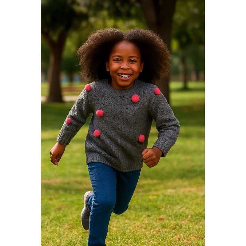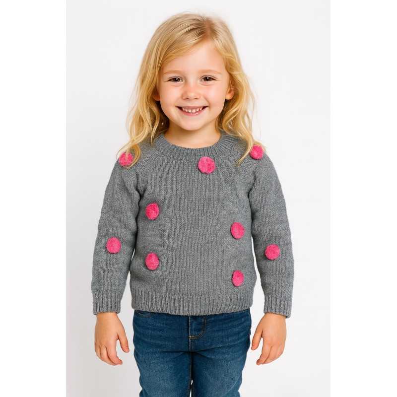پلیور دخترانه یقه گرد مدل پوپ دار